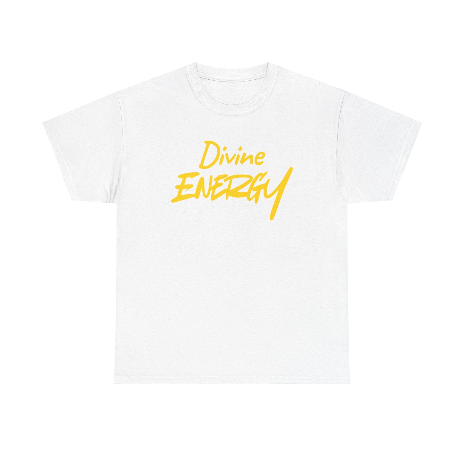 Divine Energy T-Shirt - Yellow Script Spiritual Tee - Wear Your Worship