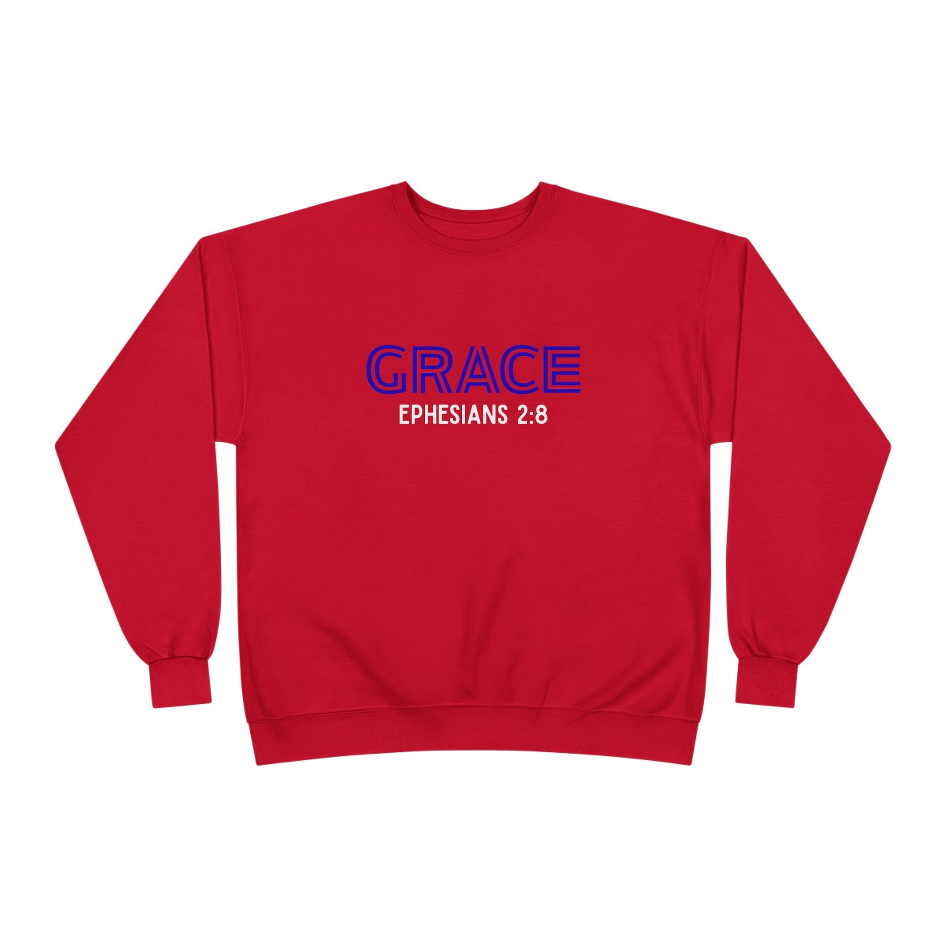 This cozy crewneck carries a quiet message of faith and reassurance. Soft fleece inside and a relaxed, regular fit make it the kind of sweatshirt you reach for on cool mornings or after evening services. The front shows a bold yet simple “GRACE” with the reference Ephesians 2:8 beneath — a gentle reminder of unearned kindness that fits naturally into everyday life. Wear it to Bible study, volunteer days, or Sunday fellowship; it layers easily over tees and under coats. The tubular knit construction and tag-free neck keep the silhouette clean and comfortable, while a touch of recycled polyester lowers its footprint.